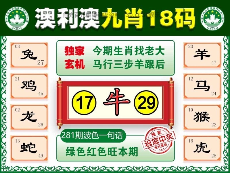 281期:九肖【马蛇猴牛羊鸡猪龙狗】开:羊47准 |